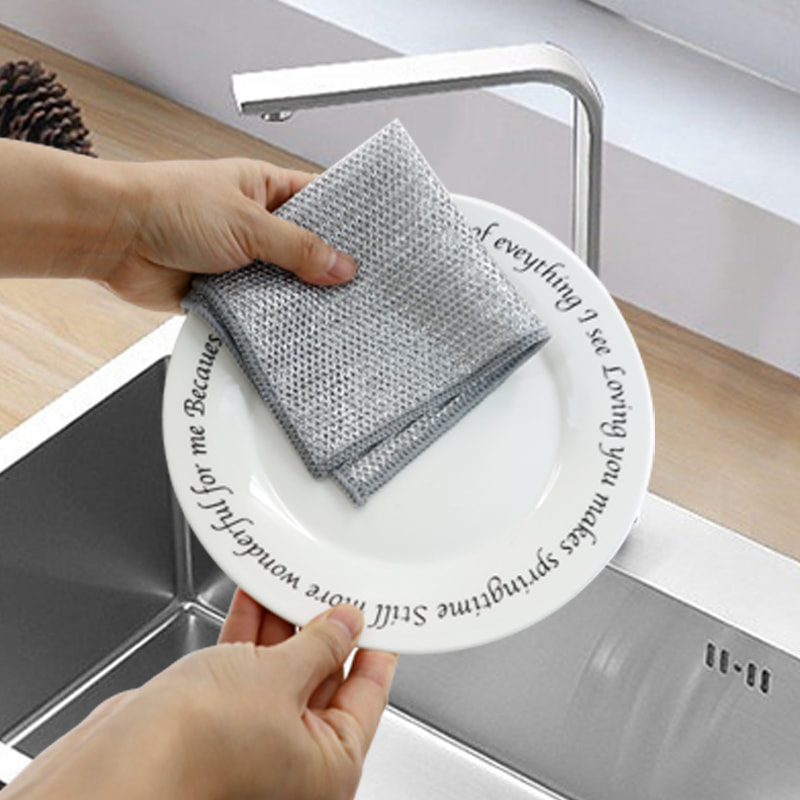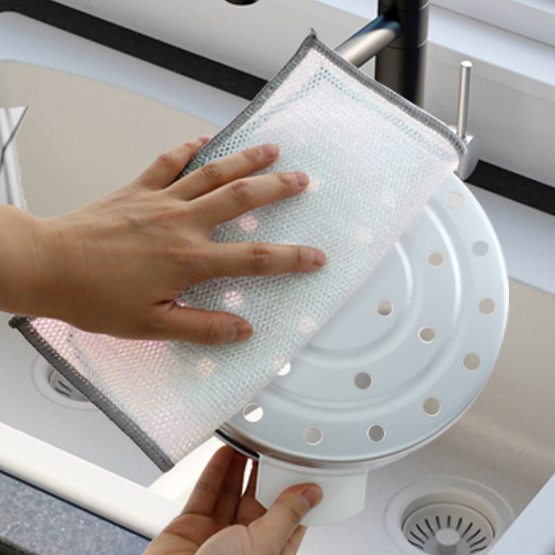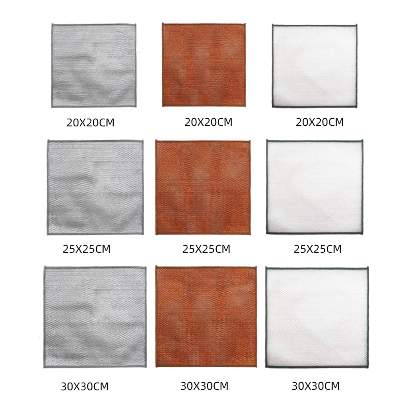 ডাবল সাইডেড সিলভার তারের ডিশক্লথ, ব্রোঞ্জ সিল্ক দিয়ে তৈরি, এটি খুব ব্যয়বহুল; কোন আবরণ, কোন পাউডার, কোন বিবর্ণ; কোন তেল নেই, তেল নেই, শক্তিশালী স্ক্র্যাপিং কিন্তু রান্নার পাত্রের কোন ক্ষতি নেই। রঙিন রেশম দিয়ে তৈরি, এটি তৈলাক্ত এবং অ আঠালো, উচ্চ চেহারা মান সঙ্গে; কোন আবরণ, কোন পাউডার ড্রপ, কোন রঙ বিবর্ণ; শক্তিশালী স্ক্র্যাপিং কিন্তু রান্নার পাত্রের কোন ক্ষতি হয় না।