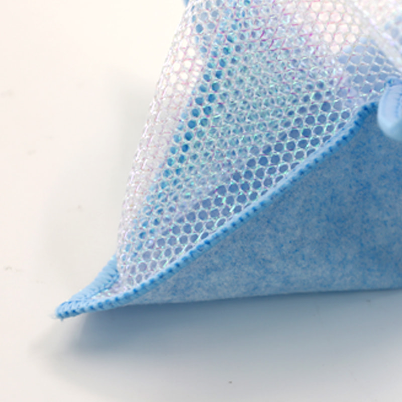বিশেষ আকৃতির গঠন, রঙিন, উচ্চ চেহারা; একদিকে শক্তিশালী স্ক্র্যাপিং ক্ষমতা সহ রঙিন পরিষ্কারের কাপড়, এবং অন্য পাশে জাল কাপড়, যা স্ক্র্যাপ করার সময় পরিষ্কারের দ্বৈত ফাংশন পূরণ করে; এটি তেল-মুক্ত এবং শক্তিশালী জল শোষণ রয়েছে। একদিকে বিভিন্ন প্যাটার্নের রঙিন সিল্ক দিয়ে ইমপ্লান্ট করা হয়েছে, এবং অন্য দিকে অ-তৈলাক্ত এবং জল-শোষণকারী ভিসকস কাপড়ের পৃষ্ঠ, যা সুন্দর এবং একদিকে স্ক্রাবিং এবং স্ক্রাবিংয়ের দ্বৈত ফাংশন পূরণ করতে পারে।